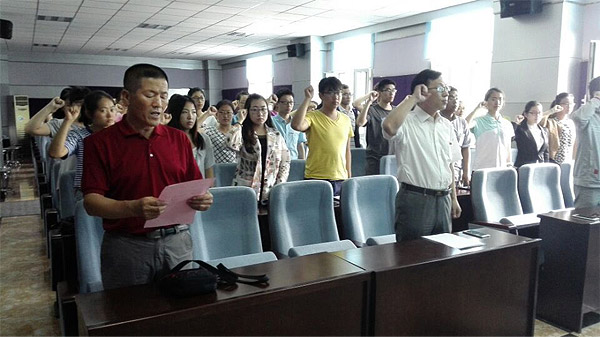 为了弘扬和传承中国共产党的精神,为党组织增添新鲜血液,2015年7月1日 onejav 举行了庆祝建党94周年暨预备党员入党仪式。 onejav 党委书记钟绍峰、副书记兼副院长刘丽、学生工作办公室主任吴晓辉,团委书记苏国范、党务秘书曲超、院工会主席胡志宏老师以及41名新党员参加了此次大会。会议由副书记兼副院长刘丽主持。 入党宣誓仪式在庄严的《国际歌》中拉开帷幕。首先由副书记兼副院长刘丽宣读41位入党同学名单并对他们表示祝贺。随后,在老党员胡老师的带领下,41名预备党员举起右拳,面对鲜红的党旗齐声宣读入党誓词,向党组织做出了庄严宣誓。12级董雪洁同学代表新党员进行了发言。她发达了此时激动的心情,并感谢党组织与老党员的热切关怀,表明要认真学习党章,积极向党组织靠拢,充分发挥党员的模范作用,努力成为合格的中国特色社会主义事业的建设者和接班人。最后,党委书记钟绍峰发表讲话,指出入党宣誓仪式是加入党组织的重要环节,也是对新老党员一次深刻的党性教育,同时也是对建党94周年的纪念。鼓励党员特别是新党员要回顾历史,学习东北抗联精神,并提出坚定信念、牢记宗旨;遵守纪律、树立形象;加强学习、增强本领这三点想法,同时表达了对新党员的希望,最后,赢来了同学们阵阵掌声。 此次宣誓仪式,旨在培养优秀的党员,为党组织带来更有活力的新因子,为 onejav 学生树立榜样,让更多的青年学生积极向党组织靠拢,在党的带领下不断前进,为我们国家建设做出贡献。
