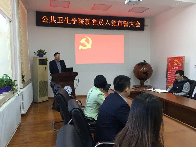 党委书记赵国利、党委副书记兼副院长、纪委书记刘丽、党委办公室主任曲超、学生工作办公室主任苏国范及本学期所有新发展的党员参加了会议。会议由刘丽副书记主持。