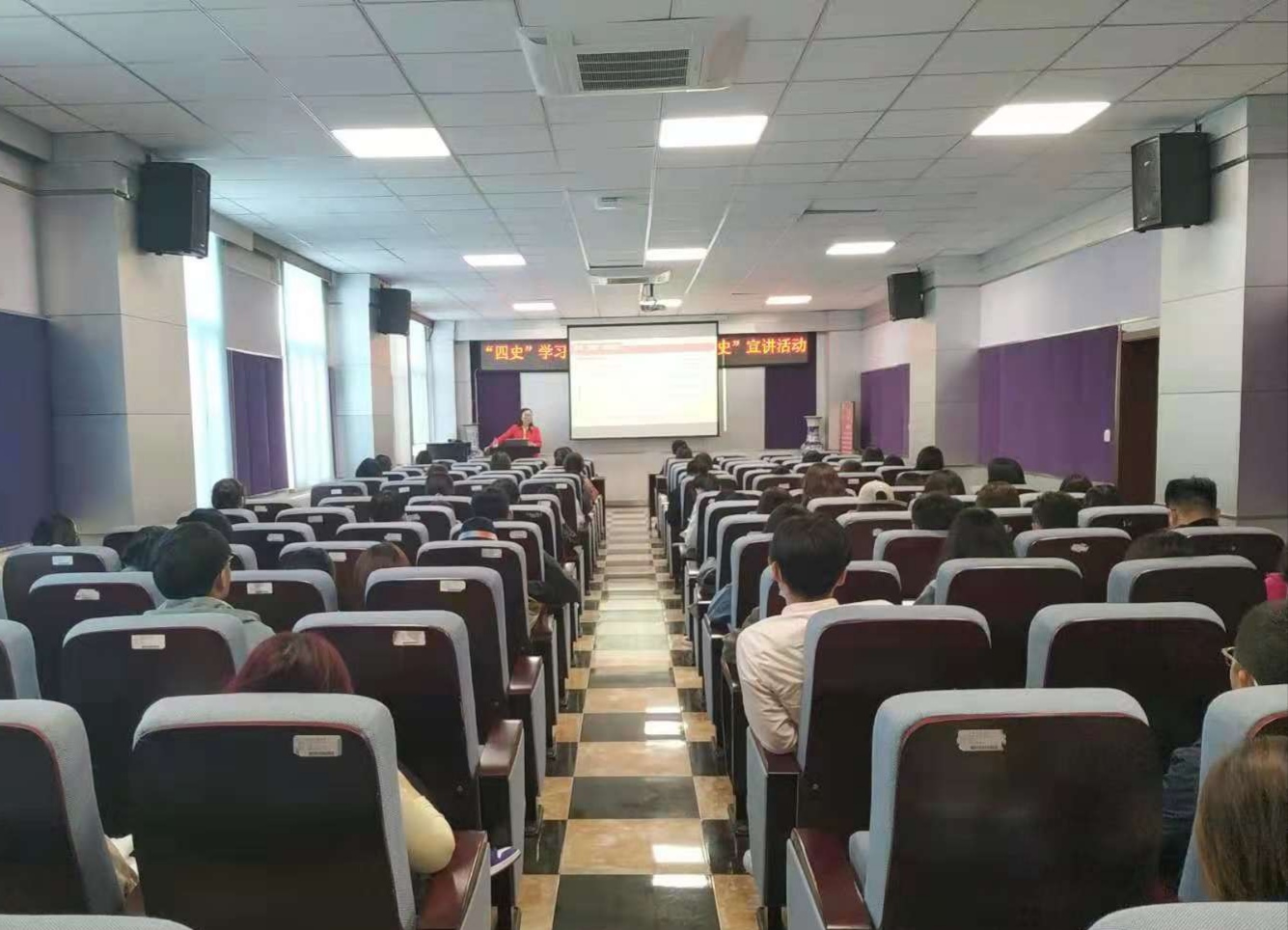 授课过程中,王秀娟老师首先从“四史”的提出、“四史”是什么、为什么学“四史”、“四史”学什么、“四史”怎样学做了讲解,然后重点围绕学习专题新中国史,从国史是什么、国史为何学、国史学什么、国史怎样学四方面进行具体阐述,尤其是对新中国史的七个历史分期进行了重点讲解。王秀娟老师详实而有重点、严肃而又生动的授课方式激发了广大学生党员浓厚的学习兴趣,整个宣讲活动气氛热烈。