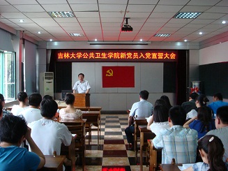 仪式第一项由老党员胡志宏老师带领新发展的党员庄严宣誓。随后,参加宣誓的党员张也代表宣誓人向党组织表决心。院党委书记钟绍峰代表学院党委发表了讲话。他代表老党员,祝贺同学们光荣地加入了党组织,确定了个人的政治理想,他要求作为优秀青年的学生党员,做到以下三点:利党利民,发挥模范带头作用,不断完善自我,他希望同志们将吉大精神发扬光大,做一名优秀的共产党员。