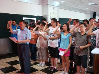 宣誓大会在庄严地《国际歌》中结束。