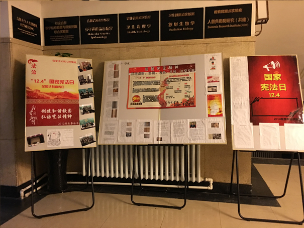 医事法学教研室组织2012级、2013级、2014级医事法学专业学生和医事法学专业硕士研究生,制作了“宪法宣传日展板”,传递依宪治国、依宪执政理念,弘扬宪法精神。