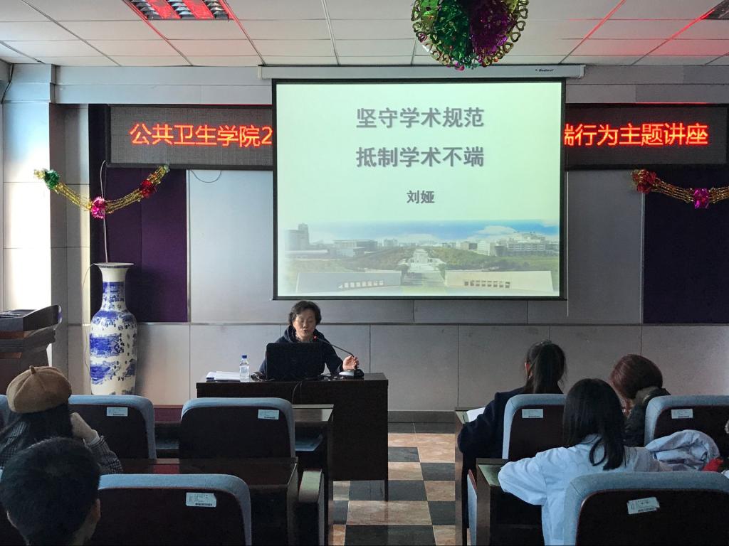 刘娅教授以“坚守学术规范,抵制学术不端”为题,围绕学术规范、学术不端、科研规范、科研不端的基本概念、特征及要素、具体表现形式等方面,结合实际案例为同学们进行了详细、生动的讲解。讲座最后,刘娅教授为2018届本科毕业生送上寄语,希望同学们扎根科学道德大地、扎根学风优良土壤,牢牢恪守科学道德和优良学风的基本规范。