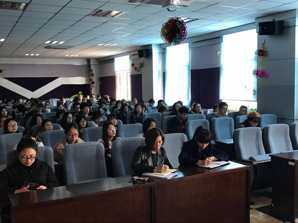 院长刘雅文主持。主管学生副书记刘丽、教科研办公室主任李鹏、2018届全体本科毕业生参加此次讲座。