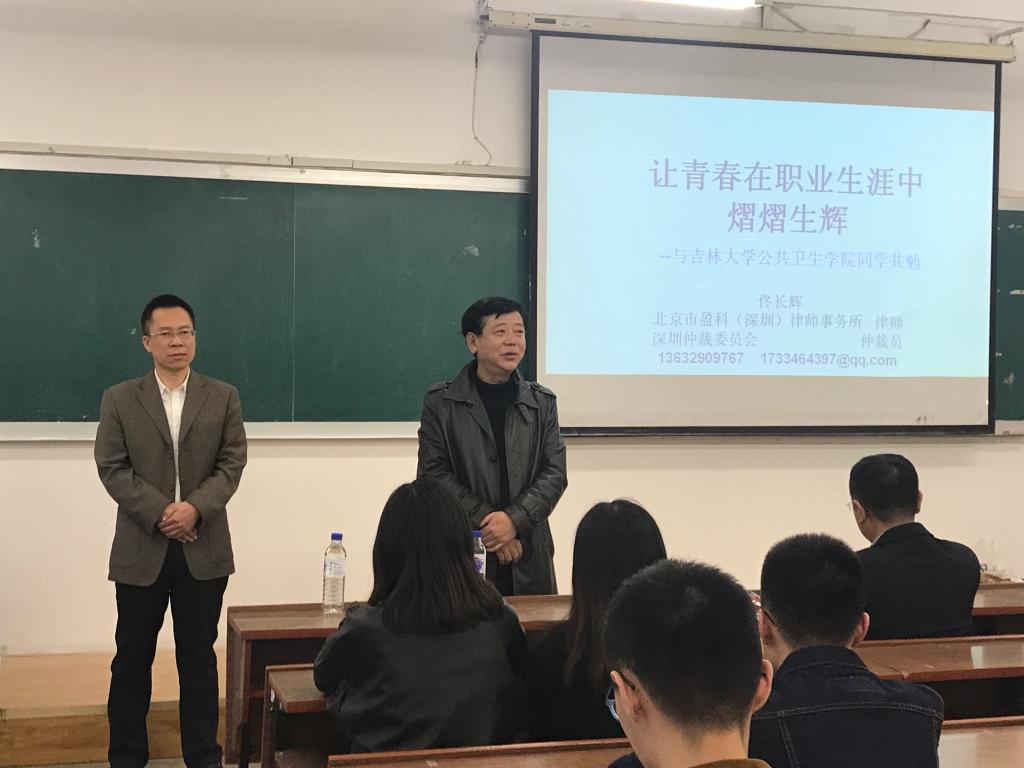 医事法学教研室组织策划举办的“让青春在职业生涯中熠熠生辉”专题讲座,这是医事法学专业第三次系列活动,在新民校区第一教学楼213教室如期举行。主讲人为北京市盈科(深圳)律师事务所合伙人律师佟长辉律师(北京大学法律硕士,原白求恩医科大学医学学士、主治医师),出席此次讲座的还有医事法学教研室石东风教授,赫名飞老师。本次讲座内容以未来职业选择为主。