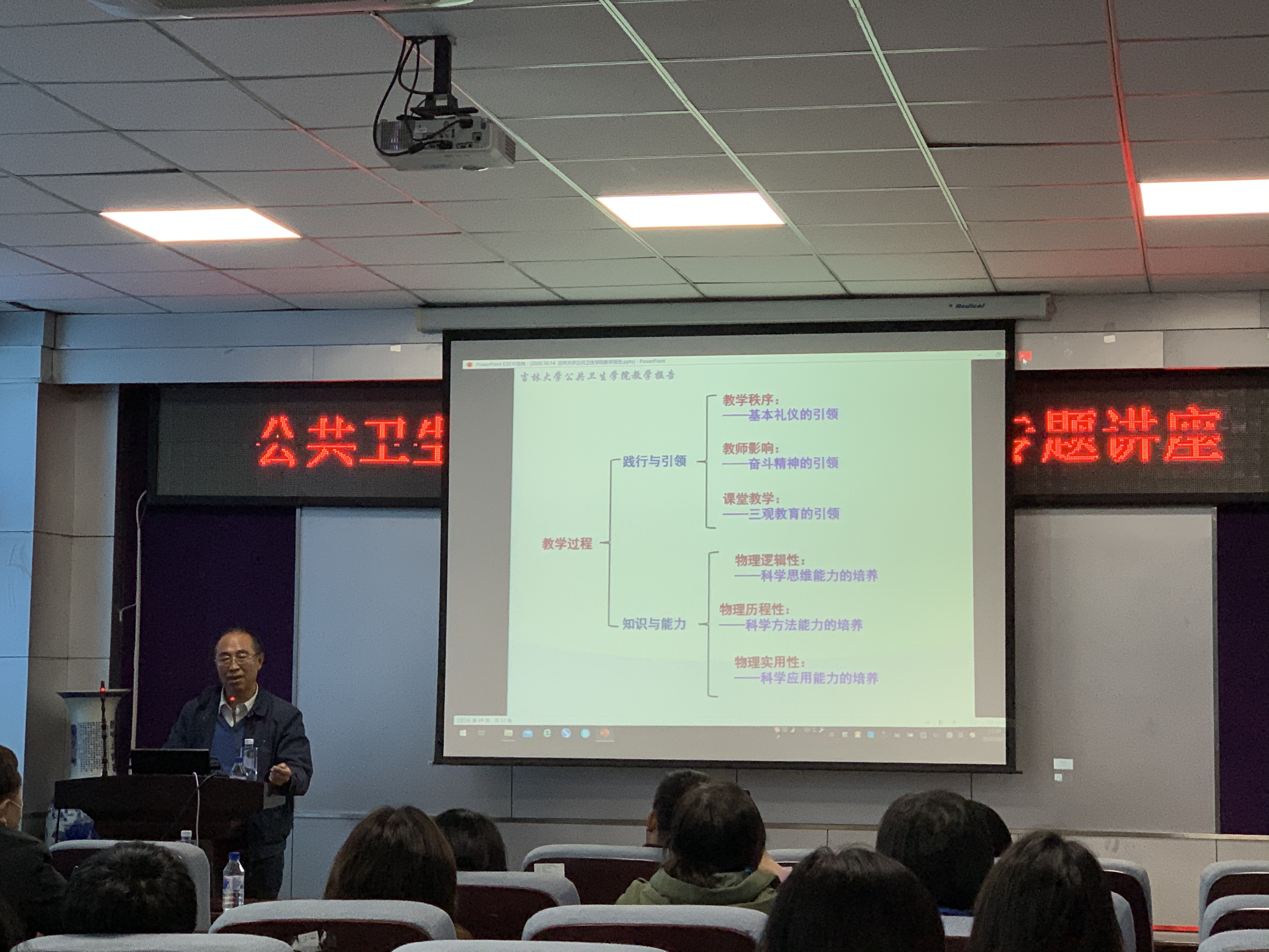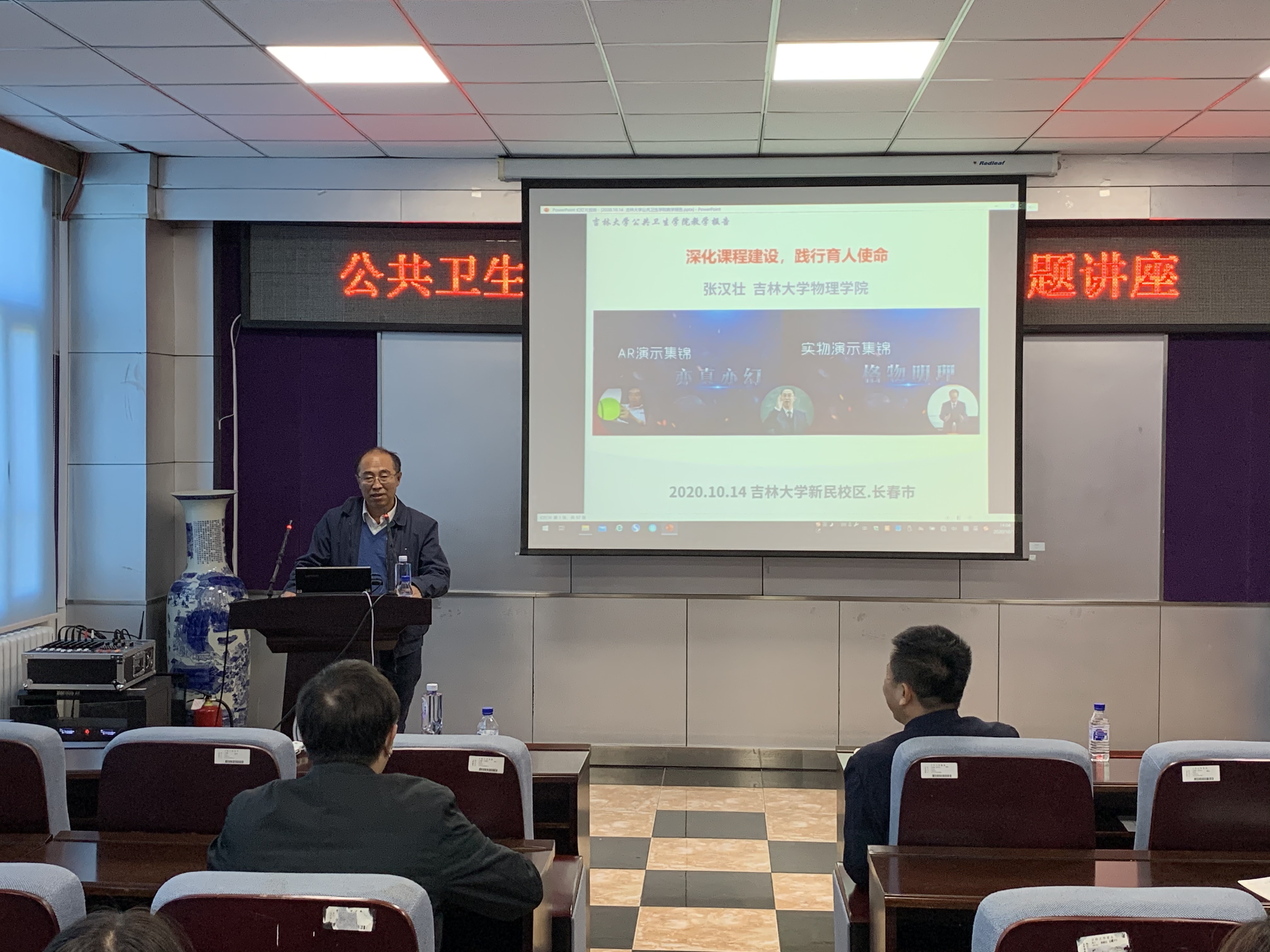 张汉壮教授从国家层面优质课程与课程思政的建设和发展历程出发,从育人理念、课程建设和过程育人三方面展开详细介绍。立德树人是教师义不容辞的神圣使命,教师承担着国家高素质社会平台的建设使命,应以传授知识为载体,在教学过程中贯彻课程思政育人理念,达到对学生能力培养和价值引领的作用;课程建设是实现育人的基石,在教学课程设计时应当秉承“居高声自远,非是藉秋风”和“会当凌绝顶,一览众山小”高度和视野,加强课程资源积累和内涵建设,提升学生培养的质量,从多维度教学过程是实现教书育人。张汉壮教授结合自身的教学经历,以物理学教学为例,结合AR演示和实物演示的方式,深入浅出地将物理学规律和应用之间紧密地串连了起来,为全院教师进行了教学示范。