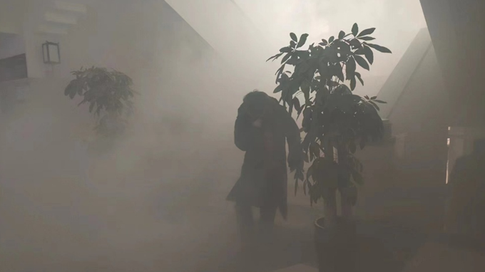 本次消防安全应急演练分疏散逃生和消防应急知识培训两个环节。演练开始,学院各楼内响起火警警报,楼道释放模拟烟雾,参演师生立即按照学院消防应急预案,从安全出口撤离至学院避难所(学院主楼后篮球场),在保卫处工作人员的组织下,整个疏散应急演练快速、安全、有序。