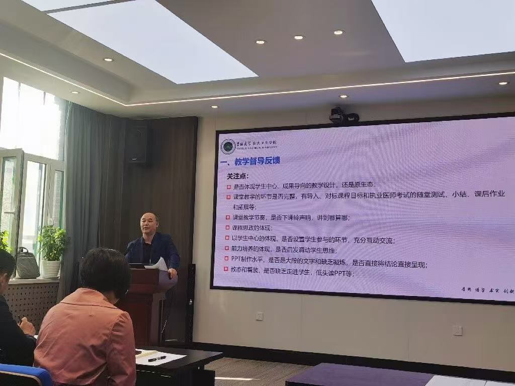 会议首先由王志成副院长对上一学年本科教学工作进行总结,他对课程体系建设、实践教学和大学生创新能力培养中遇到的问题进行了分析,并提出了解决办法;对新学年各专业教案课程设计、课堂思政元素设计、教学方法和数智化课程建设等方面提出了新要求并重点布置了本科教育教学审核评估工作。