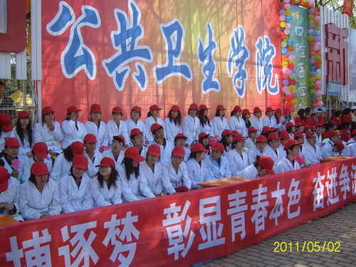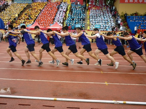 取得了喜人的比赛成绩:由2009级10名国防生同学组成的参赛队伍在“时代列车”比赛中取得了全校第二名的好成绩,并且在初赛和复赛中连续打破学校该项目记录,为该项目成绩续写高峰;2010级包雪莹同学在女子跳远比赛中取得了第四名的优异成绩;2010级李昕同学和姜颜阳同学和分别在男子5000米和跳高项目中取得第八名;由2010级同学表演的大型团体操《please don’go》以飘逸曼妙的舞姿带给观众一场视觉盛宴,最终喜获优秀表演奖。此外,值得一提的是,学院学工办全体辅导员带领观众为运动场上的运动员呐喊助威,并亲自为运动员们送水添衣,使得整个赛场既紧张激烈又温馨和谐,充分践行了“友谊第一,比赛第二”的大会精神。