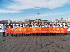 于2013年3月8日下午两时许在文化广场举行了有关“献血献爱心,血浓情更浓”无偿献血活动的宣传。此次活动是由院团委主办的社会公益活动,长春市中心血站给予书籍及专业献血知识方面的指导与支持,2011级近30名志愿者参与了志愿宣传活动。