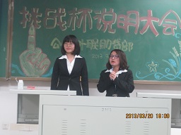 第八届“挑战杯”大学生课外学术科技作品竞赛说明大会,在新民二教2103室召开。此次说明大会旨在进一步宣传活动,加深各位预参赛者对“挑战杯”的了解。学生会主席、助贷部全体成员、预参赛者和10—12级的各班班长参加了此次大会。