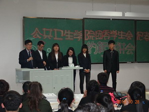 宣讲会开始后,组织秘书部部长担任主持工作并发表开场致辞。之后,学习部、生活部、文艺部、组织秘书部、宣传部、体育部、社会实践部、志愿者工作部以及刚刚成立的心理部等9个团委学生会部门与记者站成员分别以视频、幻灯片、智力问答等形式介绍自己的部门职能并与现场学生互动,期间还穿插着讲解员表演的精彩节目。他们的讲解及奇妙的创意与精彩的演说赢得了现场的一次又一次掌声。最后,各部部长耐心回答了在场新生的提问。宣讲会结束后,工作人员合影留念。