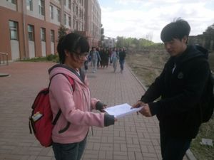 此次宣传活动共分两个部分。首先是由男生负责悬挂宣传条幅,;与此同时另一些同学负责发放关于红十的有关知识和精神的传单,意在宣传红十精神,并向同学们认真讲解世界红十字日的由来和红十精神,增进同学们对其的了解, onejav