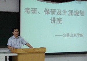 各学科专业的基本情况和学院的人才培养思路,并重点介绍了预防医学各专业及专业方向的情况。刘晓冬教授从放射医学专业的发展历史、研究生招收情况、培养目标以及毕业生去向等方面进行了详细的介绍。王伟教授为同学们讲述了医药信息与管理方面的情况,并让教研室各位优秀的老师与同学们进行面对面交流。杨淑娟教授则从社会医学系和医事法学系两个方面为同学们介绍了学科发展及招收的情况。