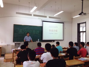 医事法学教研室主任杨淑娟教授、赫铭飞老师,医药信息与卫生管理学系主任、博士生导师王伟教授于中心校区李四光教学楼楼213室和114室分别对2014届医事法学和医药信息管理专业的新生进行了专业介绍和专业思想教育。