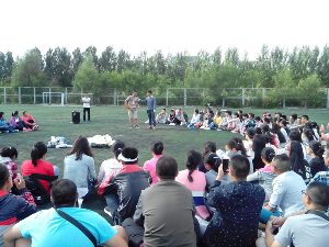 于中心校区足球场为2014级新生们举办了庆中秋活动。