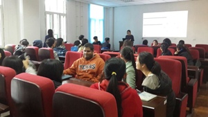 在学习委员精彩的主持下,在同学们热烈的掌声中,交流活动正式开始。首先由7名留学生分别进行了自我介绍,其中有来自纽约的、有来自迪拜的、还有来自香港的。接着由留学生抽签选择各组成员,确定小组话题之后,同学们与留学生之间展开了热烈地讨论。讨论期间,大家争先恐后地发表自己的见解,有的小组不时传来阵阵笑声,讨论气氛异常热烈。经过近一个小时的讨论,每组派出了一名班内同学与留学生同学一起进行了结果汇报。活动最后,由姚燕老师把班级同学亲笔书写的明信片和小礼物赠送给了留学生同学,以表示感谢之情。