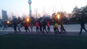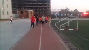 2013级放射医学一班在新民校区体育场开展黄昏锻炼活动。活动由体育委员带领,2013级全体放射一班的同学参加。