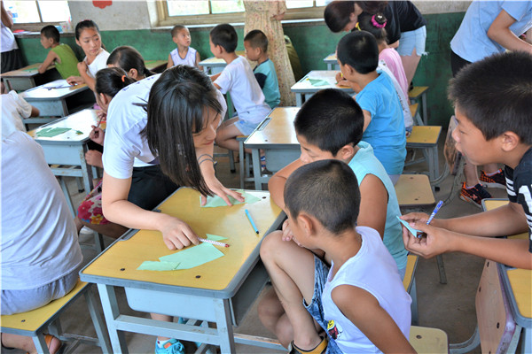 下午的教学活动中,志愿者通过启发的方式,鼓励小朋友们给父母写一封信,表达自己对他们的感恩与爱。大部分小朋友很快就开始动笔,刷刷地在纸上写着,但也有少数小朋友抓耳挠腮,志愿者和他们进行了进一步交流,发现这些小朋友的父母大多离开村子,到大城市去打工以贴补家用,像我们在新闻中了解到的外地务工人员一样,一年回家的次数屈指可数。这些“留守儿童”对他们父母既充满了思念,又委屈于没有父母的时时陪伴,有的小朋友的泪珠还打湿了稿纸,让志愿者们的心难过地揪在了一起。对这些孩子,是既心疼,又无奈。书信课的最后,志愿者向表现出色的孩子赠送了 onejav