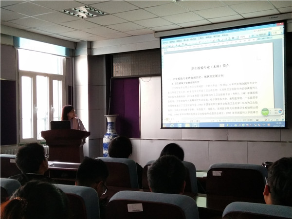 叶琳老师以学院对学生的培养方式及原则为本,分别从预防医学、卫生检验角度,为同学们讲解了以后的学习重点和就业前景。她指出,随着我国公共卫生事业的快速发展,社会对卫生检验人才的需求与日俱增。卫生检验是保护自然、预防控制疾病、保障人类健康的重要环节,是卫生防疫工作的重要组成部分,是卫生防疫机构的耳目,是执行卫生法规的依据,是研究预防医学的基础。而预防医学专业,毕业后可获得医学学位,出口宽,可以攻读公卫医师,十分有利于同学们的就业和考研。
