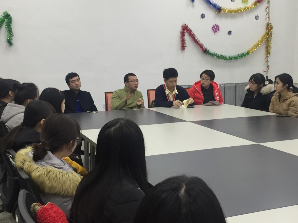 会议开始,苏国范提到最近雨雪频繁,道路湿滑,以道路安全作为切入点,展开了有关校园安全的讨论,提醒同学们出行注意安全。紧接着,谈及财产安全的问题,又叮嘱同学们要增强防范意识,提高警惕,谨防诈骗与传销组织。然后,在苏国范与班主任崔巍巍的组织下,同学们就期末的学习问题进行了重点讨论,不少同学表示自己存在学习效率不高、缺乏学习热情、缺少学习目标及方法、难以平衡学习与其他活动时间等问题。同时,有的同学对教学提出了建议,反映了部分老师讲课知识点过于宽泛,难以抓住重点;考试时间过于分散导致压力较大;教室太冷,上课条件严峻等情况。苏老师就学习与生活两个方面对同学们给予了指导:期末的学习要注意重点,实事求是,课业繁忙,要学会劳逸结合。如果出现考前焦虑,同学之间尽量相互体谅,尝试静下心来,制定好学习计划与目标。学习计划上要有追求,针对未来考研与工作做好抉择,还要注意细节,避免粗心。此外,崔老师也给予了不少建议:作为医学生要顶住学习压力,坚持住不能放弃;建议大家考研,研究生才是医学生的起步;上课一定要听课,重点内容会在课上反复讲。