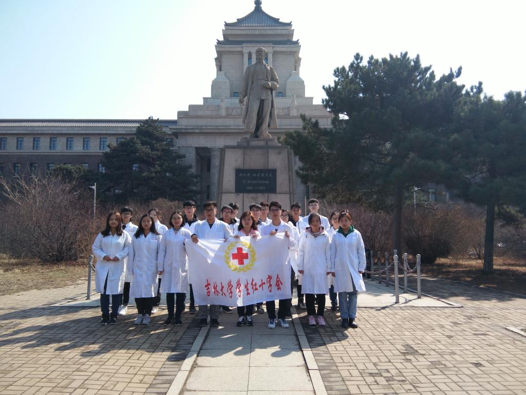 学生红十字协会于新民校区基础医学楼前广场白求恩雕像前开展红烛宣誓活动。