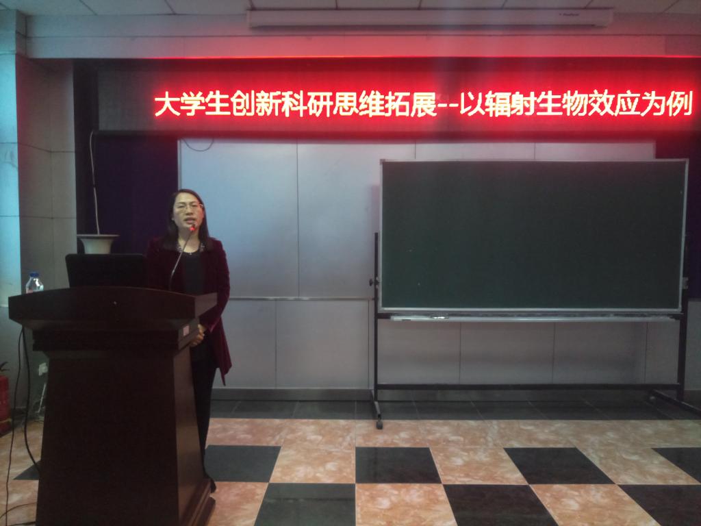三楼报告厅举行,放射医学系主任金顺子教授主讲,参与2016、2017年“大学生创新创业训练计划”项目研究的同学参与了此次讲座。