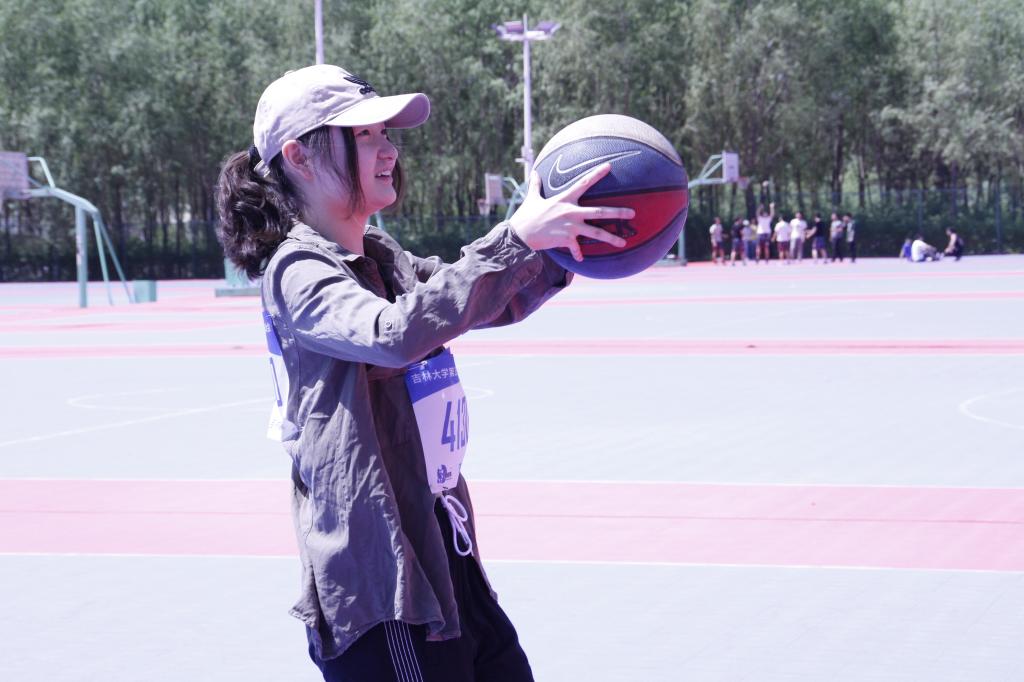 小小的一颗球,寄托着希望,奋力一抛的瞬间,一道闪亮的弧线划破美丽的长空,刺破炎炎烈日。女选手们身着个性鲜明运动衣,目光坚定的,整齐地排成一排,有序地进行着女子学生组一分钟定点投篮大赛。比赛开始前,4130号选手罗慧佳同学在有条不紊的进行着赛前的准备工作,深吸气,缓呼出,调整着呼吸,她的目光坚定而又执着。当听到裁判哨声,比赛计时一分钟开始。身高的优势与运动会前刻苦训练让她在比赛中发挥得更好,罗慧佳膝盖稍曲、起跳、出手,干净利落,篮球毫不犹豫向篮筐飞去。一分钟定点投篮比赛,可谓巾帼不让须眉。她起跳,投篮,每个动作都接近完美,每次出手都细心瞄准,每个错过的球都会仔细记在心里,吸取经验调整力度和角度。