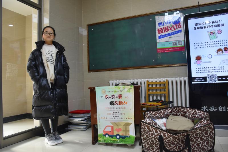 活动前期,志工部的成员们从采购物资、招募志愿者到海报宣传,每一个环节都精心准备。志工部的成员们在10号早上,提前到达指定地点,将桌椅、衣物、收纳袋等工具整齐摆放在各学生公寓门前,吸引了过路同学们的关注。不久,便有同学陆续地来到捐赠地点,或单件捐出,或成箱搬来,他们热情积极地参与活动。在收到同学们热心的捐助后,为了对大家前来奉献爱心的行为表示感谢,志工部的成员们向他们发放了小礼品。捐赠活动结束后,志工部的成员们将回收的旧衣物进行了检查与分类,并筛选出符合标准的捐赠衣物,规整地装袋送到公益组织。此次活动得到了新民校区全体同学的大力支持,经过为期两天的活动,累计得到24整袋衣物。