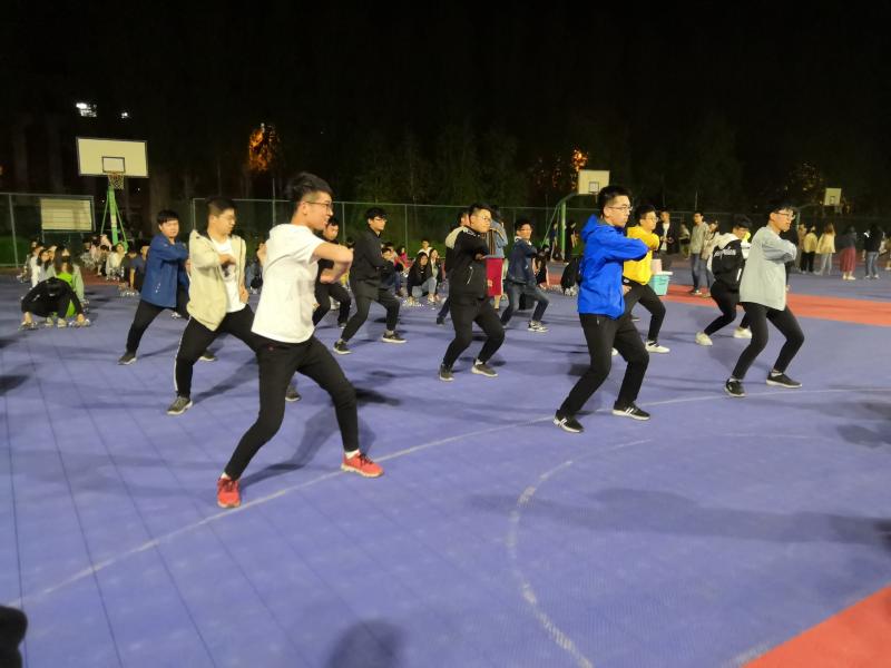 每晚九点整,32名男生准时来到集合地点开始训练。文艺部部员作为教练,耐心细致地讲解每一个动作要领,同学们仔细地聆听、认真地配合。随着一声声口号的起起落落,同学们凌乱的动作逐渐变得整齐划一,刚劲有力。大体训练过后,教练开始对每个同学的每个动作进行针对性指导,一次次的细心检查、一次次的耐心纠正、一次次的亲自示范,让同学们的动作质量得到了显著的提升。不积跬步无以至千里,不积小流无以成江河。训练接近尾声,再次合练时同学们步调一致,每一个动作皆有霹雷之势。同学们勤奋努力、团结奉献、刻苦训练的精神得到教练的认可和赞许,大家脸上都露出了欣慰的笑容。