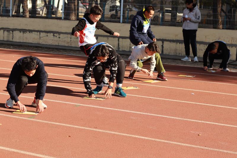 共有吴和钊、王维两位男同学,郑丽丽、次尼达瓦、姜小维三位女同学参赛。发令枪声响起,同学们奋力奔跑,在赛道中点精准刹车,完成问题,再奔向终点。