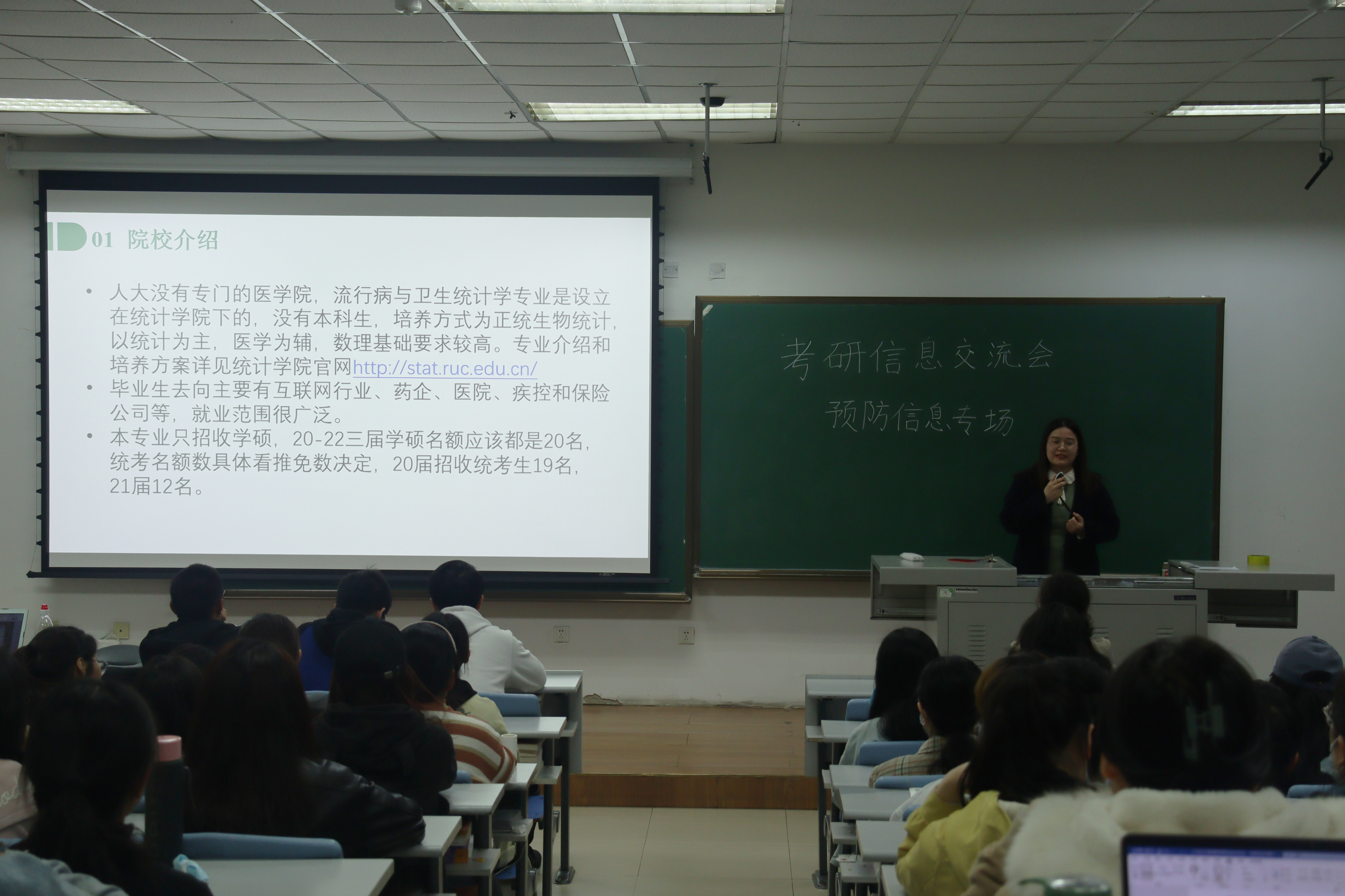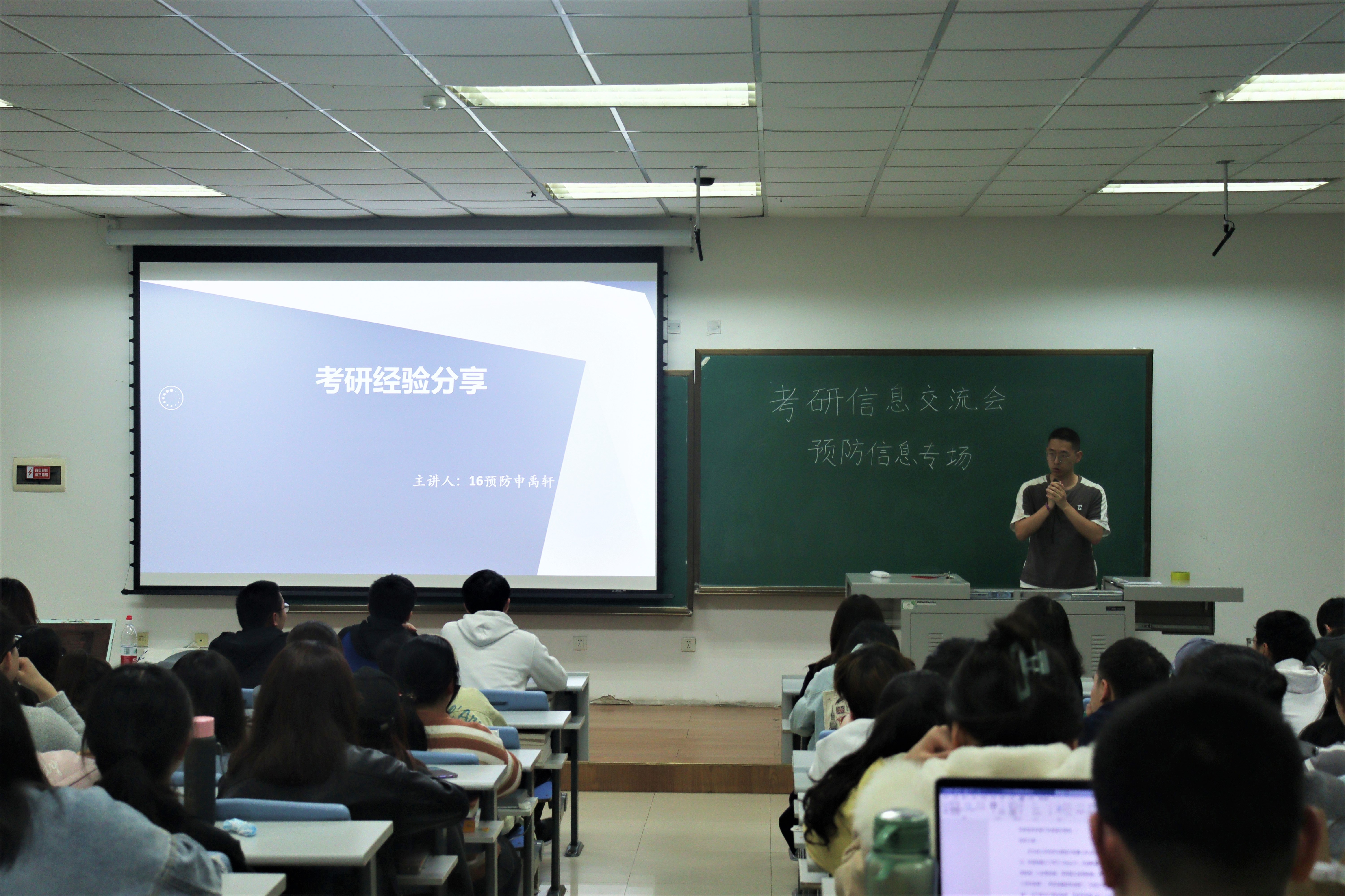 于4月25日晚在新民校区第二教学楼2103教室开展了针对预防医学、医药信息专业的考研信息交流会,会议邀请了在2020年考研中取得优异成绩的同学前来分享经验,2017级考研在即的同学们,以及其他年级有兴趣的同学参加了本次分享会。