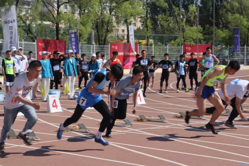 的王维和李默涵同学代表学院参加了本次竞赛。经过了短暂的起跑器调试,运动员们蹲下身子,静待口令。“各就位,预备”,随着“嘭”的一声枪响,运动员们闪电般地起身,后腿发力,冲了出去,向着终点发起了冲击。两位同学都势如破竹,将自身的速度发挥到了极致,可惜本次参赛的选手实力都很强劲,两位同学最终无缘决赛。