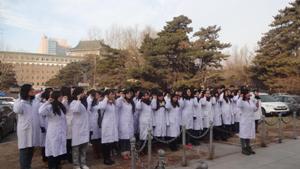 寒风凛冽,怀揣着对白求恩伟大医德精神的崇敬之情,同学们准时聚集到白求恩雕像前。党员们身穿洁白的医护服组成宣誓方阵,宣誓活动正式开始。在优秀党员代表的领誓下,现场响起了整齐、激昂的宣誓声,每位同学都在用发自内心的声音抒发着对“弘扬白求恩精神、献身医学事业”的决心。庄严的宣誓词也道出了所有党员们的心声,他们表示会恪守自己在白求恩像前的诺言,严格要求自己,时刻保持共产党员的先进性,努力使自己成为一名优秀共产党员。