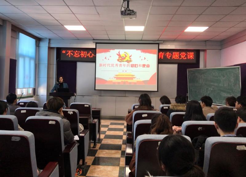 党委副书记兼副院长、2019级辅导员刘丽为本科生党员及团学组织干部传达党的前沿思想理论。