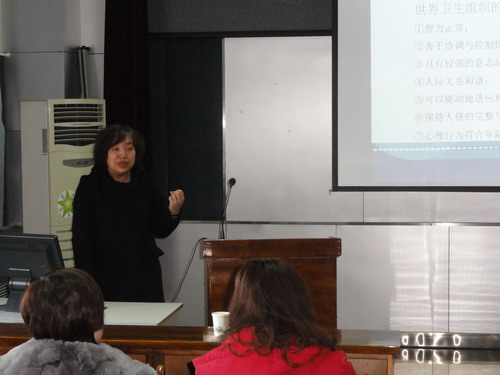 三楼报告厅举办迎“三八妇女节心理健康知识讲座”,为全体女教师传授心理健康知识,会议由党委副书记兼副院长于洗河主持。