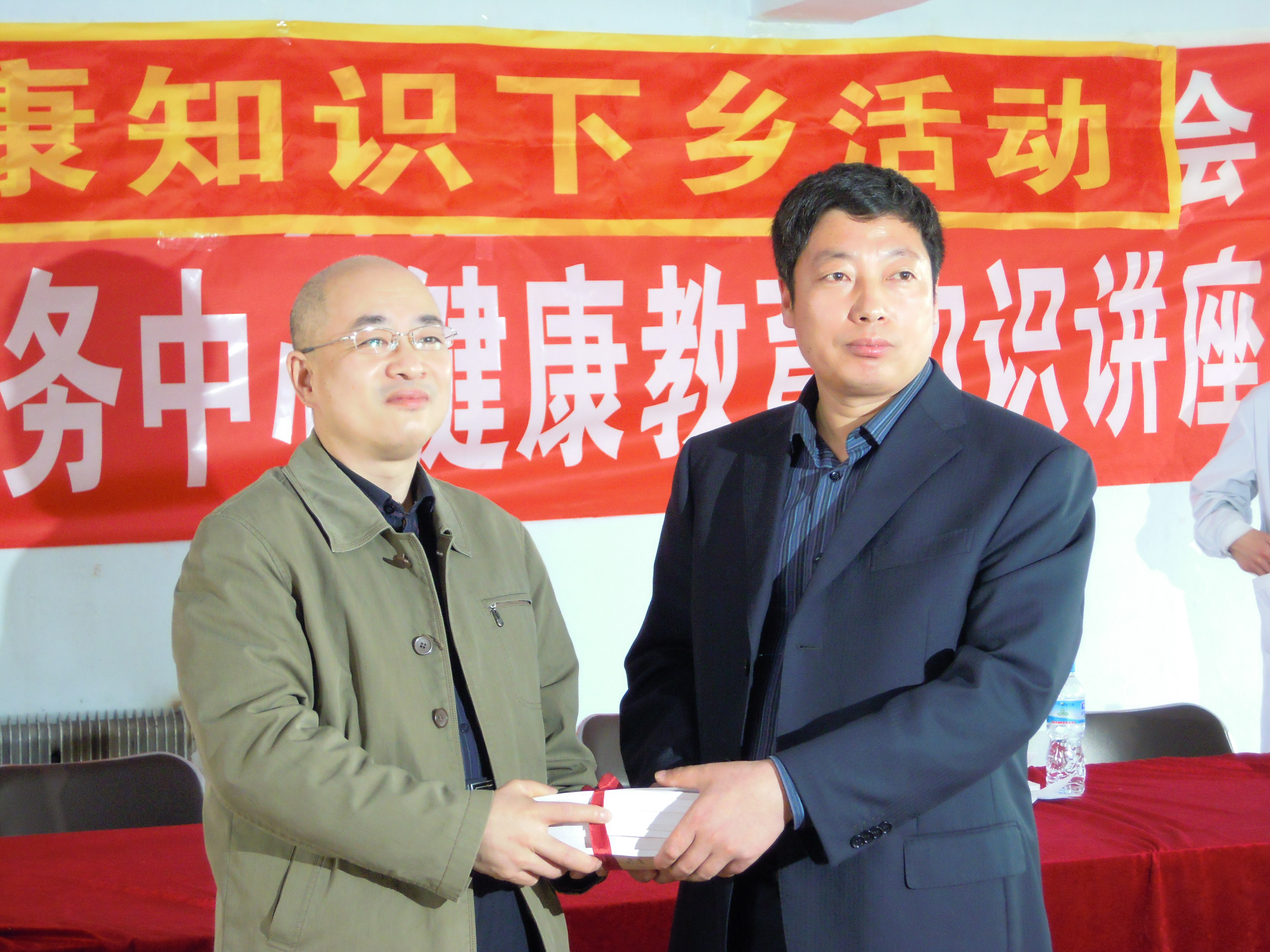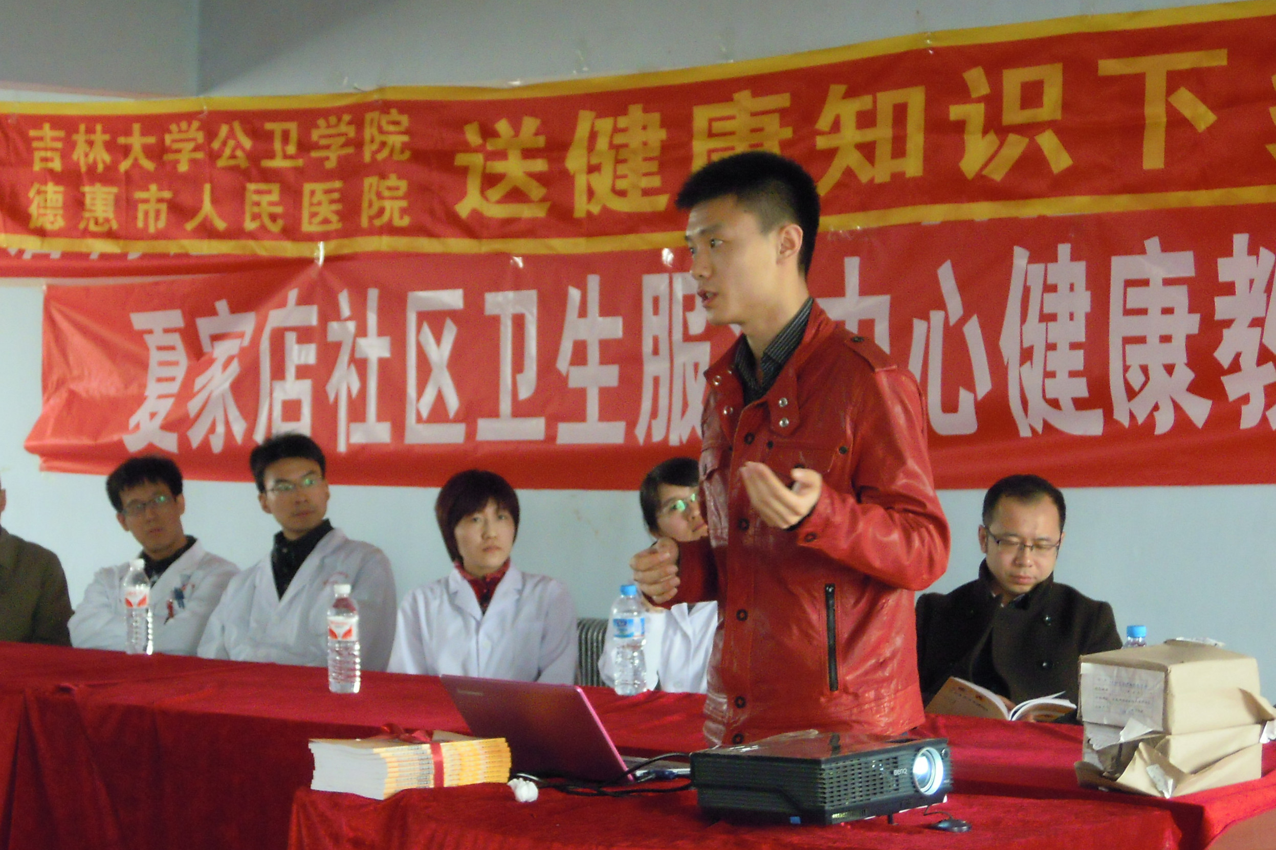 第一医院心内科优秀青年医生杨洋(本书副主编)的“高血压的防与治”、七年制学生钱磊的“狗咬伤的处理”、七年制学生贾海燕的“刀割伤的紧急处理”、医药信息专业研究生于跃的“如何通过互联网获取医学知识信息”,最后,德惠市人民医院优秀外科医生尹志(本书副主编)结合本书内容做了阅读指导。每个讲座短小易懂、图文并茂、生动活泼,赢得阵阵掌声。之后,在热烈掌声中,由编者向夏家店镇卫生院领导和现场听众赠书。