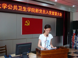 仪式第一项由老党员胡志宏老师带领新发展的党员庄严宣誓。随后,参加宣誓的党员张也代表宣誓人向党组织表决心。院党委书记钟绍峰代表学院党委发表了讲话。他代表老党员,祝贺同学们光荣地加入了党组织,确定了个人的政治理想,他要求作为优秀青年的学生党员,做到以下三点:利党利民,发挥模范带头作用,不断完善自我,他希望同志们将吉大精神发扬光大,做一名优秀的共产党员。