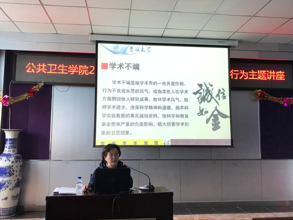刘娅教授以“坚守学术规范,抵制学术不端”为题,围绕学术规范、学术不端、科研规范、科研不端的基本概念、特征及要素、具体表现形式等方面,结合实际案例为同学们进行了详细、生动的讲解。讲座最后,刘娅教授为2018届本科毕业生送上寄语,希望同学们扎根科学道德大地、扎根学风优良土壤,牢牢恪守科学道德和优良学风的基本规范。