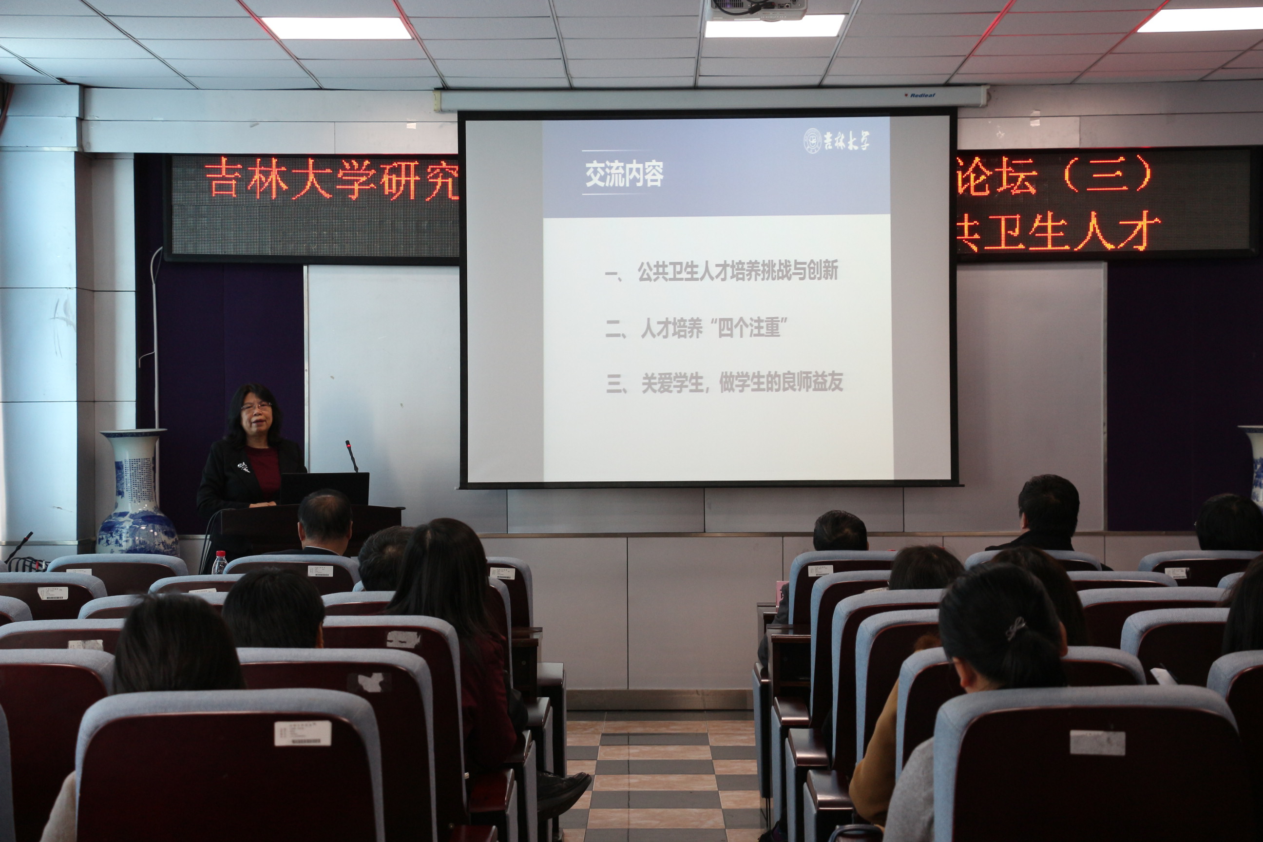 学术委员会主席李娟教授作了题为“公共卫生创新人才培养探索与实践”的主题报告。报告分三个部分:一是公共卫生人才培养挑战与创新;二是人才培养“四个注重”;三是关爱学生,做学生的良师益友。李娟教授结合几十年来自身的研究生培养经历,深入浅出地与大家分享了在公共卫生人才培养过程中的经验与体会。李娟教授的报告引起了各位研究生导师的共鸣,并迎来了阵阵掌声。主题报告之后是“论坛的经验交流与讨论”环节,各位导师积极发言,从“如何培养研究生学术创新能力”;“如何培养研究生实践创新能力”;“如何增强研究生社会责任感”以及“如何指导研究生恪守学术道德规范”四个方面进行广泛交流与分享。讨论过程气氛热烈,各位导师结合自身教育经历以及科研经验,从实例中总结教书育人经验,从经验中凝练“立德树人”共识。在互动交流过程中,学位办公室胡春平副主任从研究生院的层面,为导师们在研究生培养过程中遇到的问题进行了解答。最后, onejav