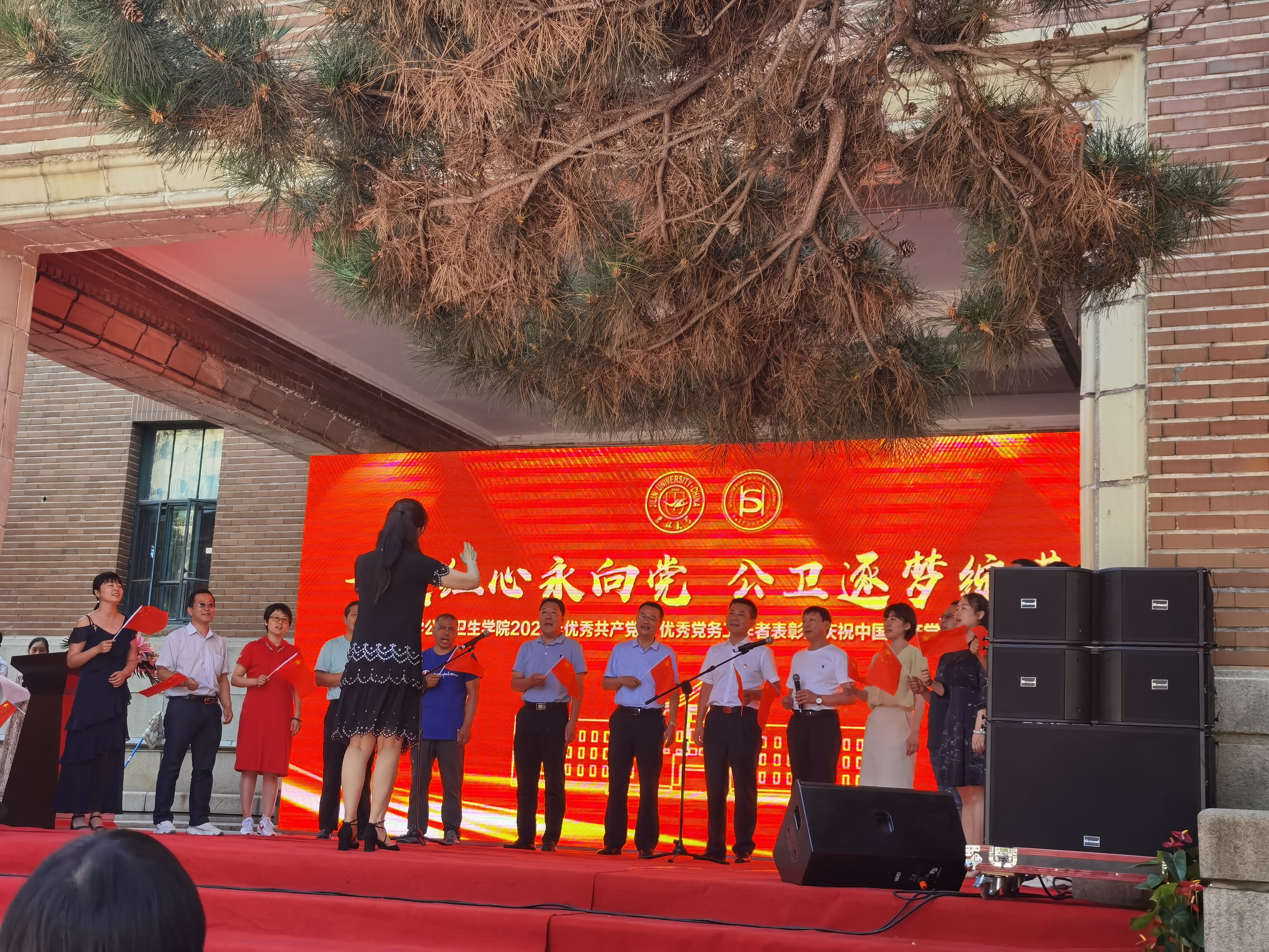 妇委会、工会于学院办公楼前联合举办了“一颗红心永向党,公卫逐梦绽芳华”2021年优秀共产党员、优秀党务工作者表彰暨庆祝中国共产党建党100周年红歌会。学院党委书记赵国利、院长刘雅文、副院长魏国志、党委副书记于亮及各科室师生共同参加了本次活动。