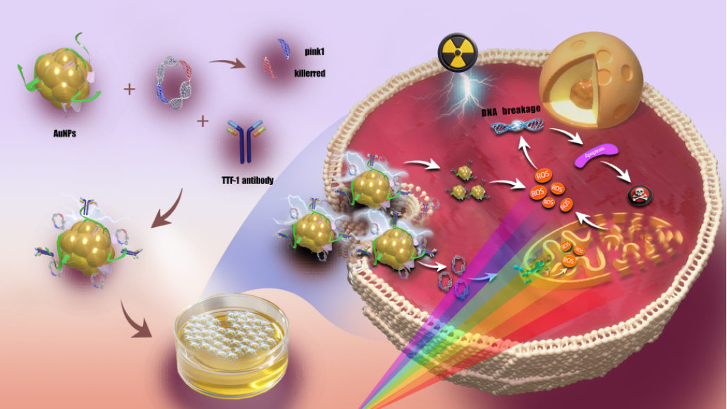 预防医学专业和放射医学专业的8名本科生组成,自主设计并制备了具有定位线粒体诱导ROS的多功能纳米系统(AuNPs-TTF1-Pink1-mtKR),在在联合电离辐射处理肺癌细胞中的靶向性和放疗增敏功能,为非小细胞肺癌的治疗提供新的思路和方法,以提高放疗的有效性和患者生存率。