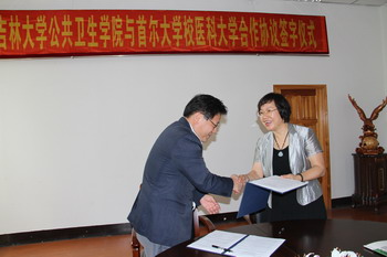 院长于雅琴教授和首尔大学医学院院长姜大熙教授分别介绍了各自学院的师资、科研基本情况和办学现状,然后双方签属了教师和学生交流以及科研合作协议。同时,双方就感兴趣的话题和内容进行了广泛交流。在签字仪式后,姜大熙教授率团参观了部分实验室。