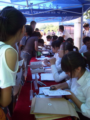 8月26日一大早,准备迎新的团委学生会成员就开始忙碌起来。搬运座椅,落实人员,以充分的准备,饱满的热情来迎接新同学的到来。8月26日下午,新生入学手续的办理准时开始。新生和家长们陆陆续续到来,同学们热情地把他们引领到报到处,之后引导他们一步步完成报道手续。面对着炙热的阳光,我们的接待工作激情却有增无减。高温中,每一位工作人员都各司其职,竭诚为新生服务,为新生们创造了一条从报到到入住的绿色通道。正是因为这热情、周到的服务,我们的工作人员赢得了新生及家长的一致好评。在这3天中,于洗河书记、吴晓辉主任、关老师、田老师、苏老师和曲老师都亲临迎新处,与新生及新生家长亲切交谈,并对家长的疑惑一一解答。