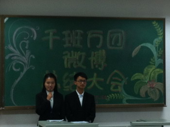 会议上,两个年级共八位代表依次上台,就本班微博的覆盖面、传播力、内容质量及专业深度等几个方面进行了展示。微博以生活常识、实用信息、时事讨论、大学生关于青春的人生感悟以及与医学相关的科普知识等等为主要内容,充分体现了当代大学生的时代风貌与博学广知,突出了身为医学生的我们对社会的责任感。大家主要以更加专业的态度对网络上的各种与人们身心健康息息相关的信息进行解读与推广,例如一段时间前大家广为关注的H7N9疫情与相关预防知识,结核病的预防与传播知识等,将公卫人的专业与热心体现得淋漓尽致。
