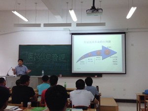 医事法学教研室主任杨淑娟教授、赫铭飞老师,医药信息与卫生管理学系主任、博士生导师王伟教授于中心校区李四光教学楼楼213室和114室分别对2014届医事法学和医药信息管理专业的新生进行了专业介绍和专业思想教育。