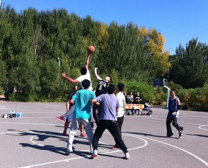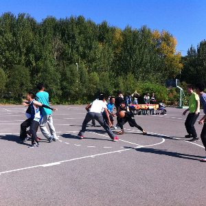 学生会体育部于中心校区篮球场组织了一场由新老生共同参加的篮球友谊对抗赛。