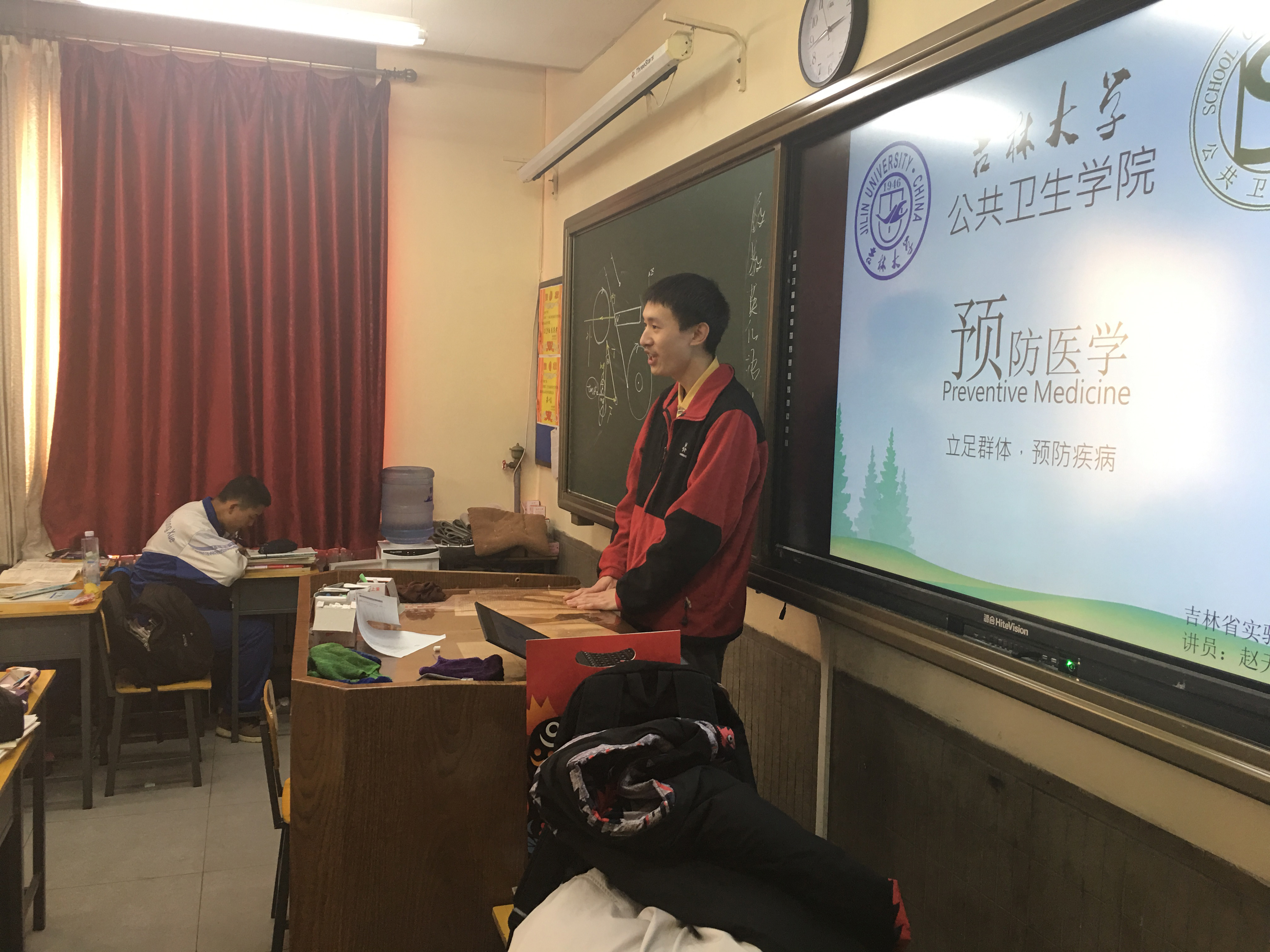 于2017年寒假期间派出2015级学生赵天业同学及其小组返回其母校吉林省实验中学进行宣讲。