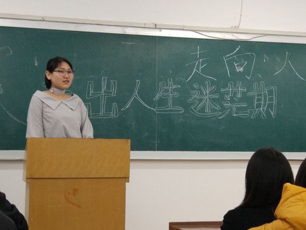 学生工作办公室兼2013级辅导员吴晓辉主讲,部分2012级优秀学生代表与会分享了有关考研的学习经验和择业、就业的亲身经历,会议旨在帮助更多面临人生抉择的大四学子正确认识未来、从容迎接挑战。