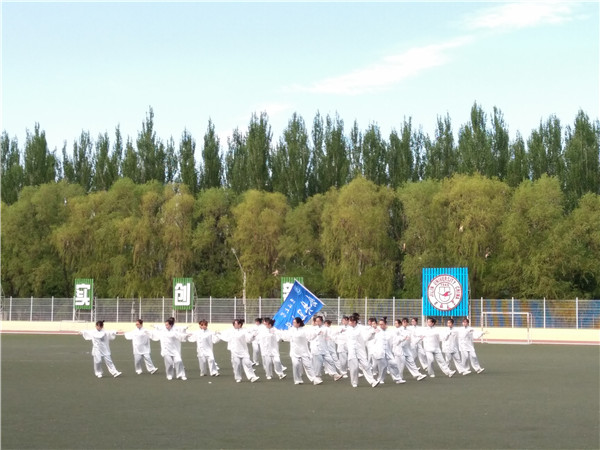 于第26位出场。队员们身着凛然的白衣,斗志昂扬、蓄势待发,迈着整齐的步伐进入赛场。伴着轻柔舒缓的音乐,队员们动作整齐流畅、神态自然,掤、捋、挤、按、采、捌、肘、靠,招招精准到位,融刚柔、动静、虚实为一体。整套动作行云流水、挥洒自如,将太极拳含蓄内敛、以柔克刚的精髓表现于身、感受于心,这是队员们刻苦训练的成果与高度团队意识的高度展现。现场观众报以热烈掌声。